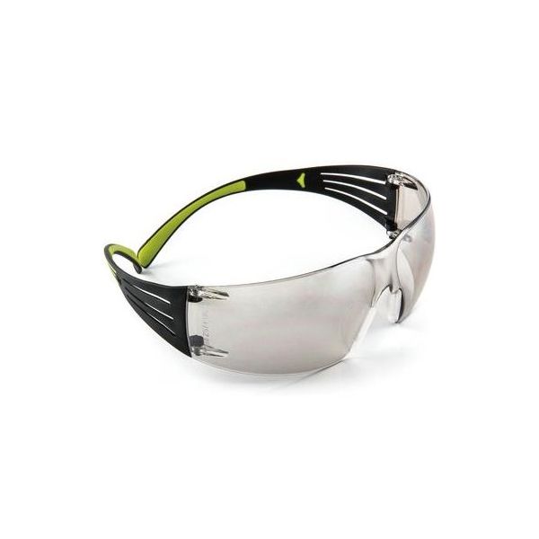 Skyddsglasögon med ljusgrå spegellins och beläggning mot repor och imma. Utrustad med mjuka, ultratunna skalmar för ökad komfort över öronen samt mjuka, justerbara näsbryggor.