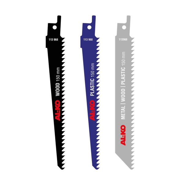 AL-KO 113968 är 3 stycken sågklingor till AL-KO CS handsåg PS 1815. Setet innehåller 1 st klinga för trä, 1 st klinga för metall och 1 st klinga för plast.