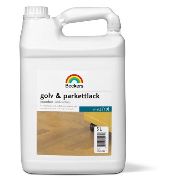 Beckers golv- och parkettlack är en vattenburen klarlack som behandlar och skyddar alla slags trä- och parkettgolv inomhus. Lacket ger en slitstark och tvättbar yta som håller golvet fint längre och fördröjer gulning av träet.