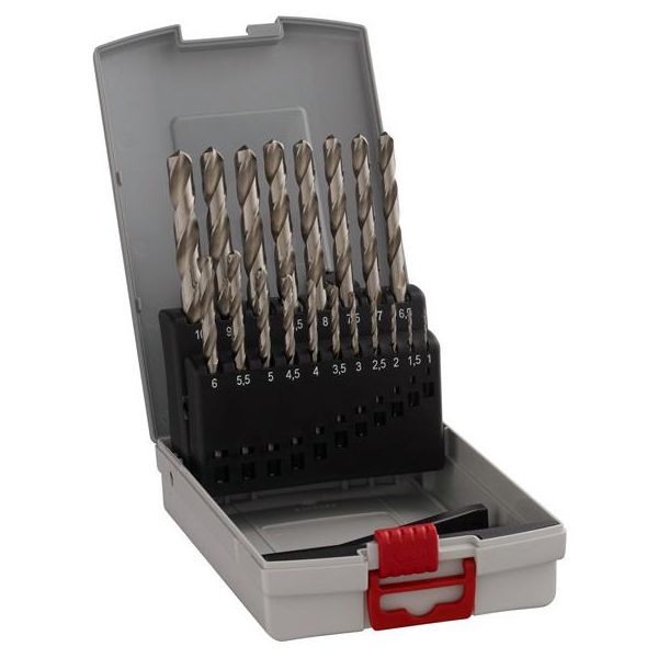 19st HSS-G metallborrset Ø1-10 mm i praktisk förvaringslåda. Slipade metallborr med självcentrerande och korsslipad 135º borrspets.