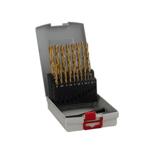 19st HSS-TiN metallborrset Ø1-10 mm i praktisk förvaringslåda. Metallborr med titanbeläggning, självcentrerande 135º krysslipad borrspets.