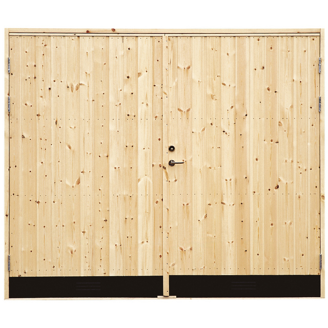 Garageport 10° med rak furupanel och baksida i 4 mm plywood under panelen.