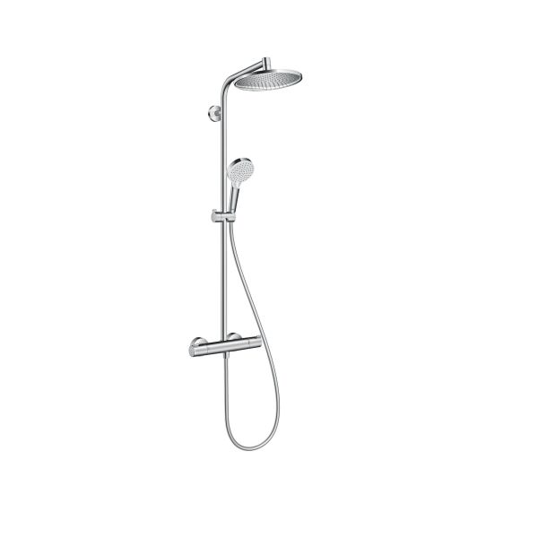 Hansgrohe Crometta S 240 takduschset 160 c/c bestående av huvuddusch, handdusch, duschtermostat, duschslang, glidfäste och duschstång.