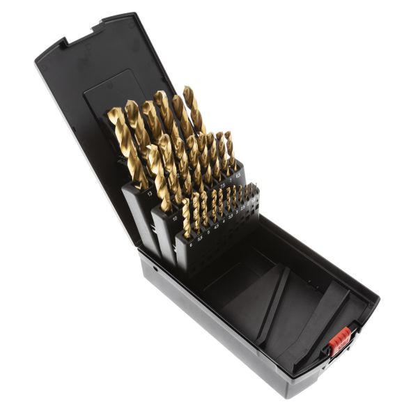 Harlingen 504283 är en borrsats med 25 stycken Tin-belagda HSS borrar. 1-13 mm med 0,5 mm intervall.