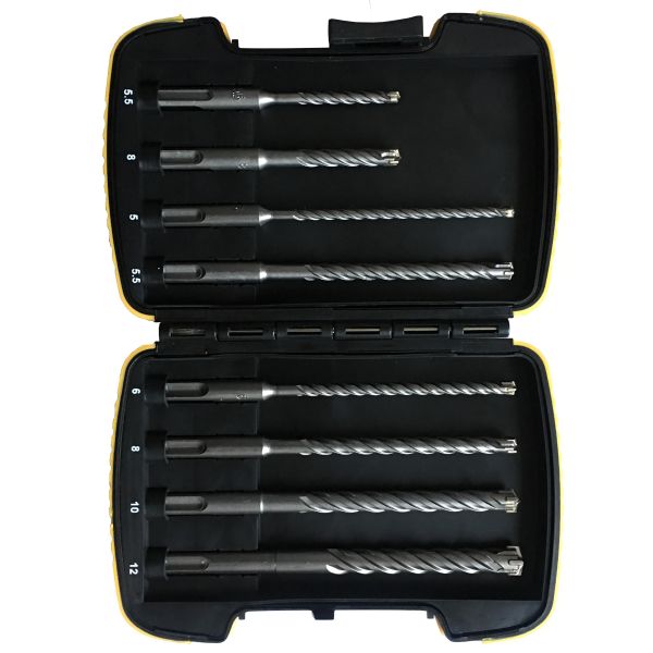 Hammarborrsats som innehåller 8 hammarborrar med SDS+-fäste och 4 skär. Hammarborrarna har en diameter från 5 upp till 12 mm.