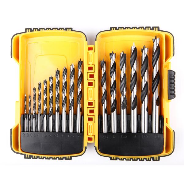 Borrsats med 16 stycken högkvalitativa träborrar med diameter på 3-10 mm. Levereras i rejäl plastbox.