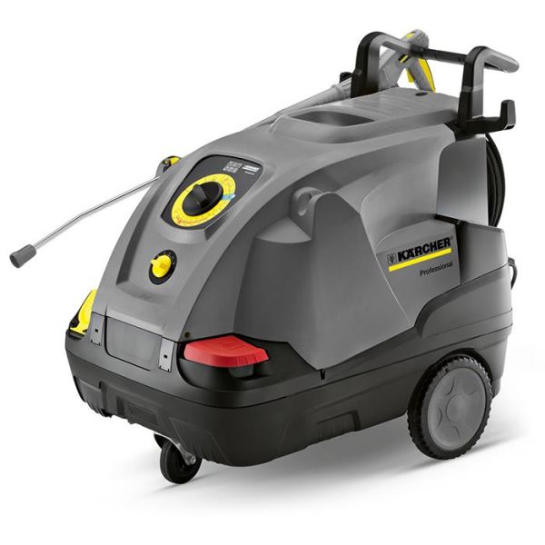 En mobil trefas hetvattentvätt med 4-polig, vattenkyld elmotor och 15 m slang på vinda. Med vattenkapacitet på upp till 800 l/h samt en maximal temperatur på 155°C.