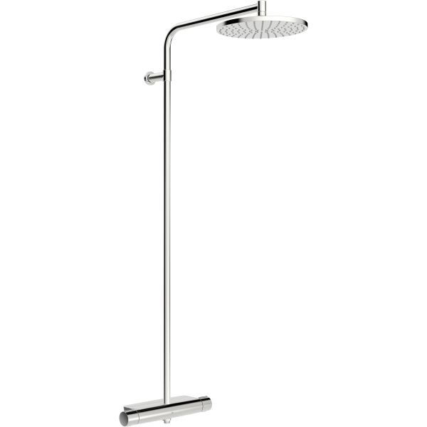 Takdusch med termostatblandare och takdusch. Användarvänliga vred med temperaturbegränsningsknapp som reglerar temperatur upp till 38°.