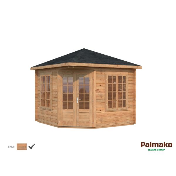 Palmako Melanie Lusthus 10,9 m²/inv. 9,9 m², med 44 mm vägg, brun, impr.