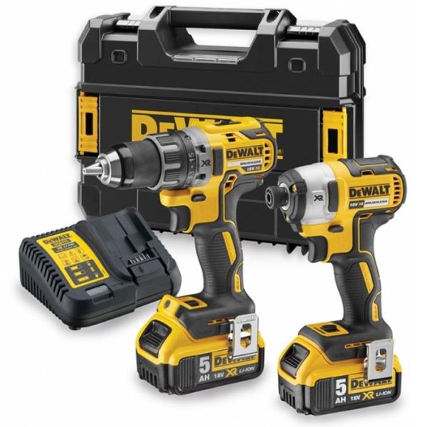Verktygspaket på 18V innehållande borrskruvdragaren DCD791 och slagskruvdragaren DCF887. Levereras komplett med två stycken 5,0Ah batterier, multiladdare och TSTAK II förvaringsväska.
