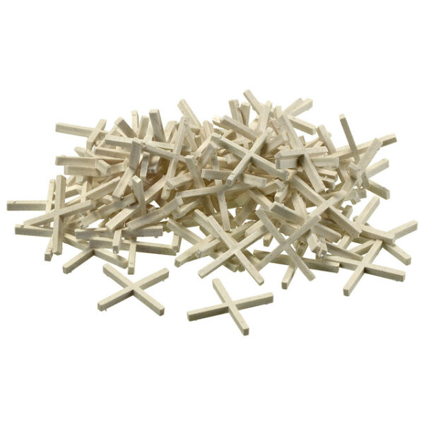 Kakelkryss i plast för att ge en jämn fogbredd vid plattsättning. Kryssen kan sitta kvar i fixet då fogen täcker dem.