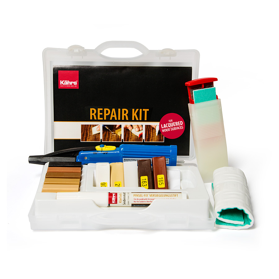 Reparationssats avsedd för mindre skador på parkettgolv.Repor, sprickor och andra skador på parkettens ytskikt lagas enkelt med detta reparationskit från Kährs.