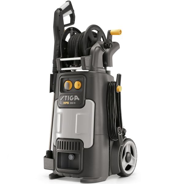 Högtryckstvätt med en elektrisk induktionsmotor, ett maxtryck på 150 bar och ett nominellt flöde på upp till 520 l/h.