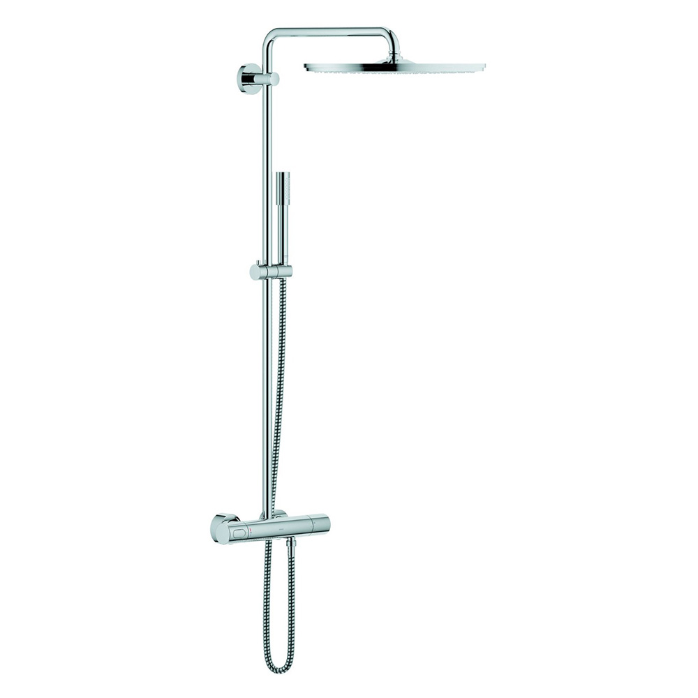 Takduschset Grohe Rainshower System 400 är en komplett familjedusch i krom med takdusch, handdusch och 150 cc termostatblandare.