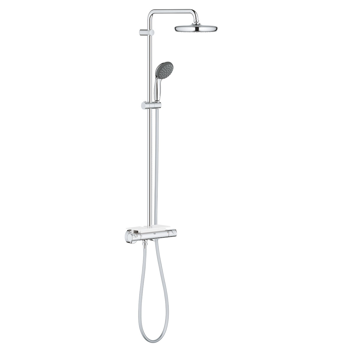 Takduschset Grohe Vitalio Start System 210 150cc är ett komplett takduschpaket i stilren design med många funktioner. Den ⌀210 mm stora duschhuvudet ger en härlig duschupplevelse och har stråltypen…: