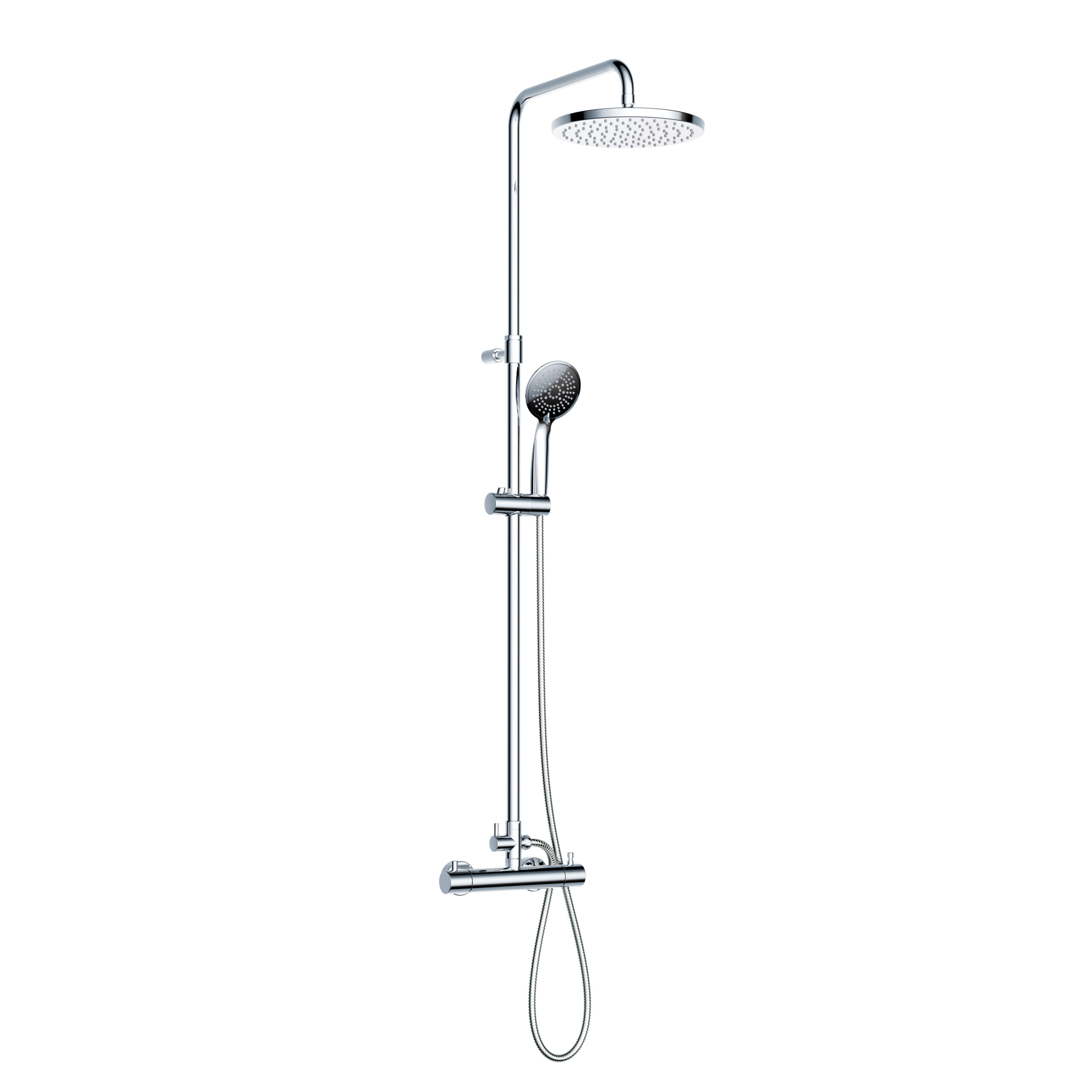 Modernt och stilrent takduschset. Inklusive termostatblandare, cc 150 mm. Handdusch med tre stråltyper och 1,5 meter duschslang, diameter duschhuvud 110 mm. Stor rund takdusch med diameter 250 mm. Med…: