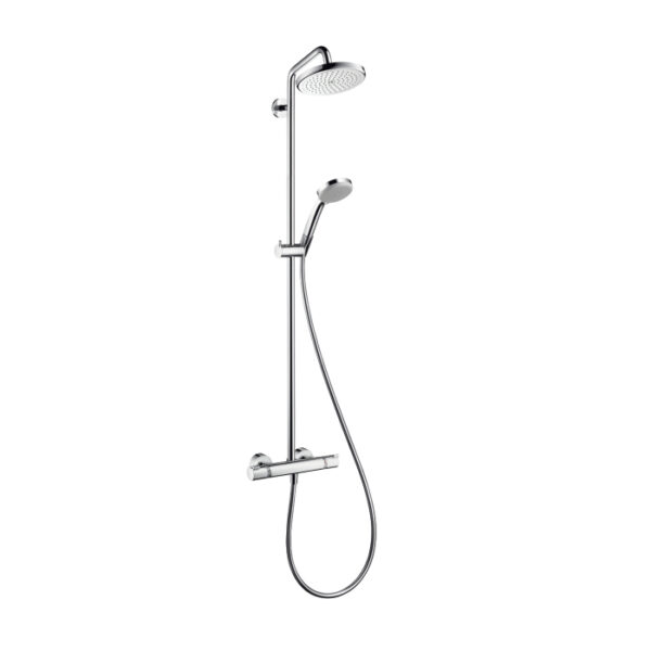 Takduschset Hansgrohe Croma 220 Showerpipe är en komplett familjedusch i krom med takdusch, handdusch, duschslang och 150 cc termostatblandare. Flödesmängd vid 3 bar är 19 l/min. Takduschsetet är…: