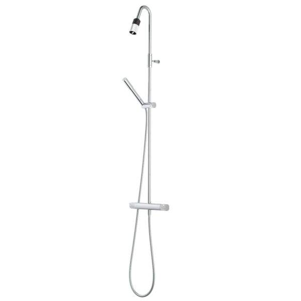 Takduschset Mora Izzy Rock i krom med lättrade vred är ett komplett takduschpaket med takdusch, duschblandare, 1750 mm duschslang, pinnhanddusch och handduschhållare. Duschslangen är metallomspunnen…: