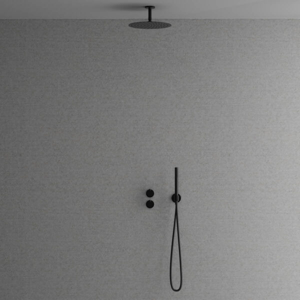 Takduschset Scandtap Steel Harmonized 2Y är en termostatblandare för inbyggnad med eleganta slimmade detaljer.