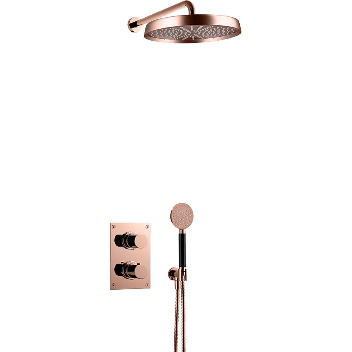 Takduschpaket ARM7268 ED2 för inbyggnad med tryckbalanserad termostat, handdusch, taksil, duscharm och inbyggnadsbox (med färdigmonterad blandare). Anslutningsrör i vägg och monteringsskenor ingår…: