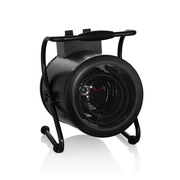 Robust värmefläkt för portabelt bruk i metall med svart finish. Lämplig för garage, lager, tvätthallar, butiker, verkstäder, fritidshus, byggarbetsplatser mm.