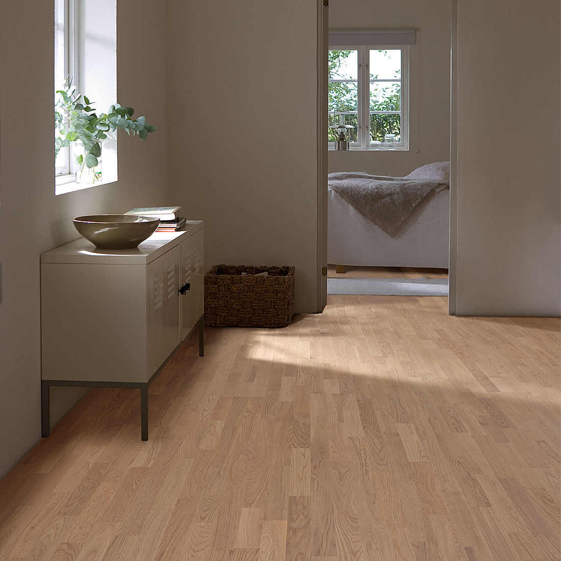 Trägolv Kährs Ek Abetone 3-stav är en vitpigmenterad, mattlackad 3-stav med bas på Ekens naturliga färgvariationer. Trägolv Kährs Ek Abetone 3-stav har en tjocklek på 13 mm och är slipbart 2-3…: