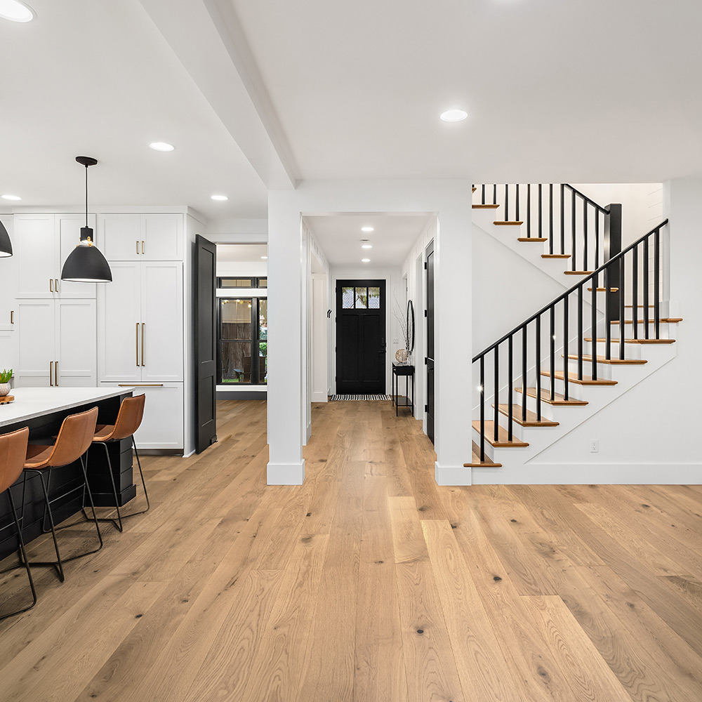 Enstavigt parkettgolv med en mattlackad yta. Detta golv har ett klassiskt skandinaviskt utseende. Ytan är i naturell ekkulör med en lätt borstning för att ta fram träets naturliga former samt mattlackad…: