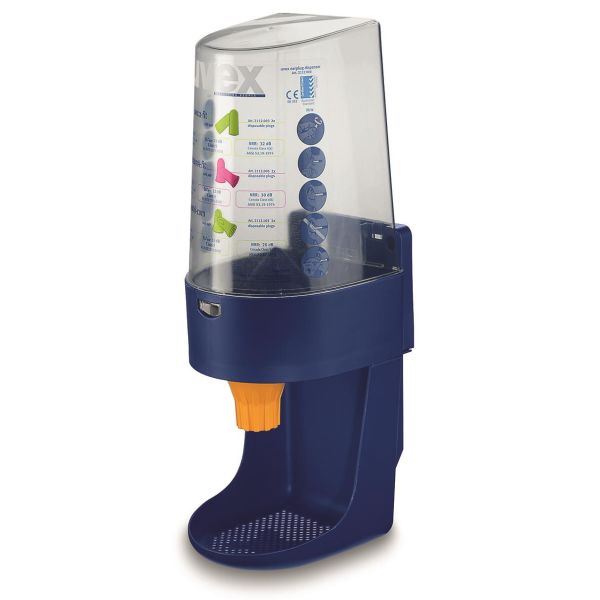 Väggdispender för uvex öronproppar x-fit, hi-com, com4-fit, xact-fit. Dispensern rymmer 600 par proppar och kan lätt fyllas på utan att tömma tidigare ”påfyllningar”.